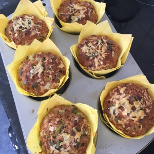 4. Evenly spoon into the muffins cases and top with a sprinkling pumpkin seeds and a little parmesan. Bake in the oven for 20 mins for 12 muffins or 25-30 mins for 6 large muffins. The muffins are cooked when a toothpick is inserted and comes out clean. Leave to rest in the tin for 5 minuets before turning out onto a cooling rack. Serve warm with butter or leave to cool completely and enjoy on the go.