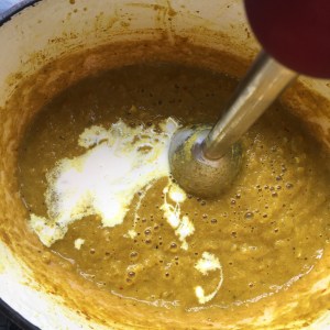 3. Add the flour and cook for 2 minutes before incorporating the stock bit by bit. Bring to the boil and reduce to a simmer for 10 mins. Take off the heat and add the yogurt before bleeding with a hand blender or food processor until you have a smooth curry sauce.