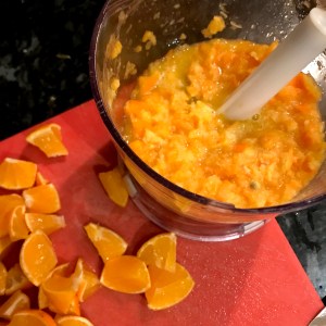 1. Start by giving your easy-peelers a bit of a scubas under warm water to remove any wax and slice off the storks. Cut each clementine into quarters and blitz roughly in a food processor for a few seconds (be careful not to over blitz, as you want your jam to have a bit of texture). If you don’t have a food processor, simply chop the easy-peelers into roughly 1cm pieces.