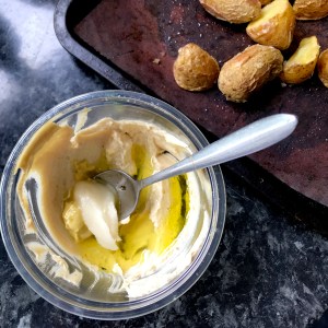 6. Put both squashes on a baking tray and bake them for 30-35 minutes. Remove from the oven, remove the lids and drizzle with a little extra virgin olive oil. Serve immediately with a simple green salad and stale for dipping and scooping.