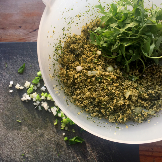 4. By now your couscous should be nice and soft. Uncover the bowl and using a fork, scrape across the top to start loosening it. Keep the pressure light and keep scraping until you get to the bottom of the bowl and your couscous looks light and fluffy. Put to one side.
