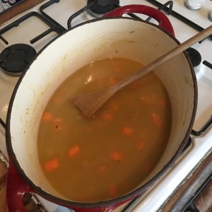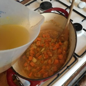 2. Add the butternut squash and cook for a further few minutes before adding the curry paste. Cook for an additional few minutes.
