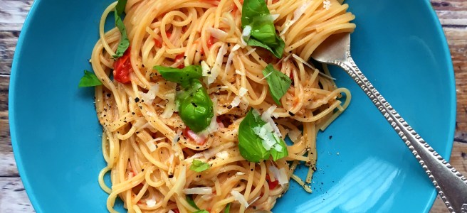 Most cacio e pepe recipes I researched seemed to include butter as well as combination of parmesan and pecorino but I found both additions to be unnecessary, I didn’t need more calories thank you very much. I did however, approve of adding a bit of chopped garlic and a few cheeky cherry toms. Is it a traditional cacio e pepe? Certainly not, but who cares, I won’t tell if you won’t.