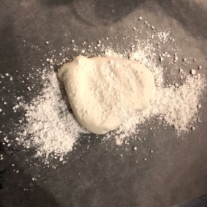 3. Once the dough has formed, remove the spoon from the bowl and knead the dough with your hands – like you would a bread dough. If the dough is too sticky you may need to add more icing sugar.
