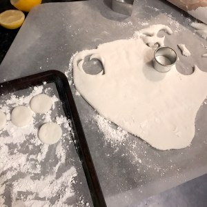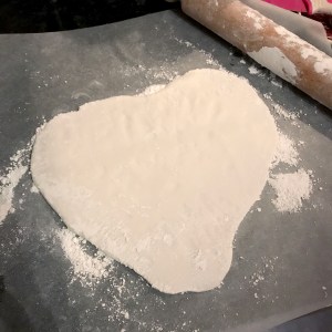 You’ll need: Baking paper, rolling pin and a small round cookie cutter