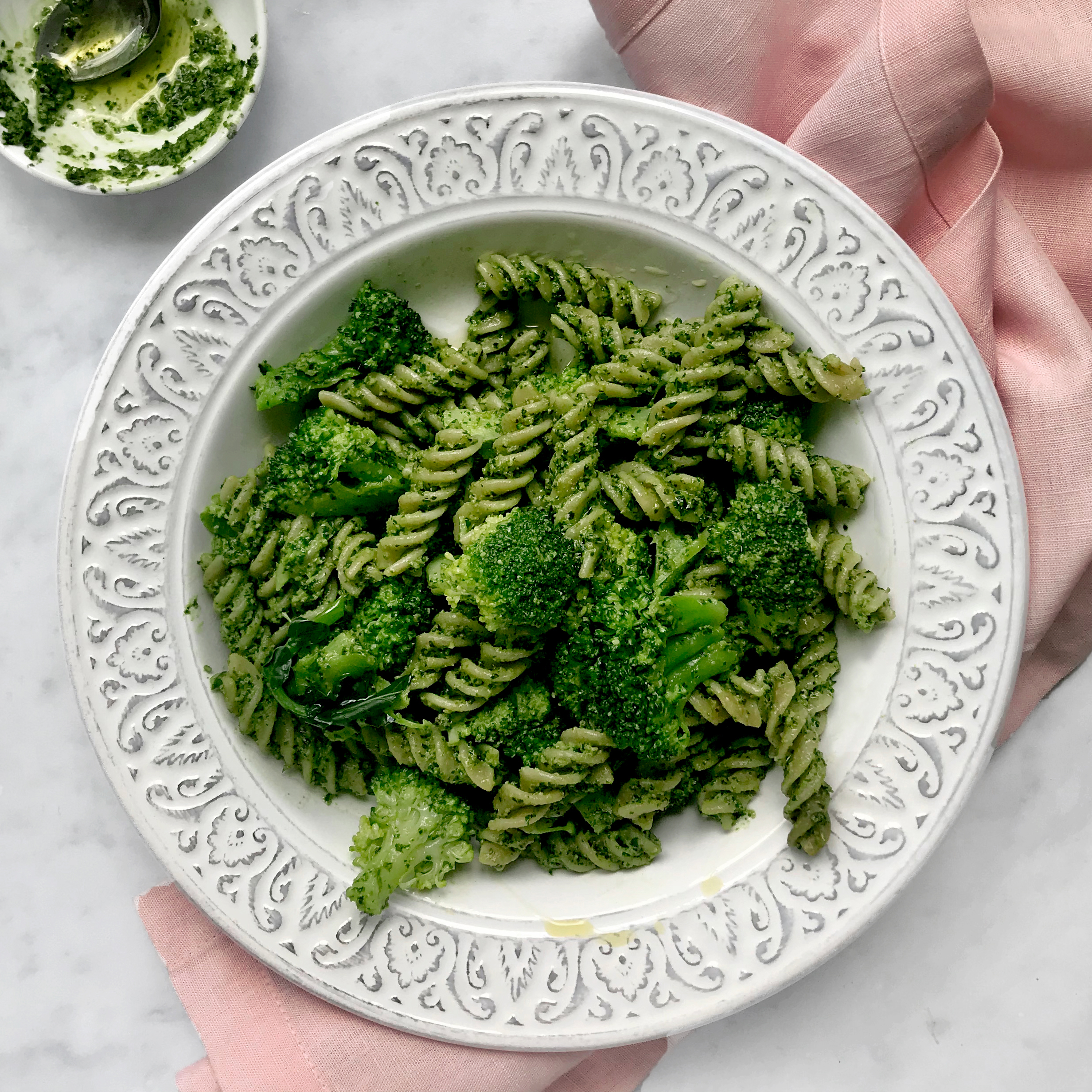 Broccoli fusilli with kale & walnut pesto